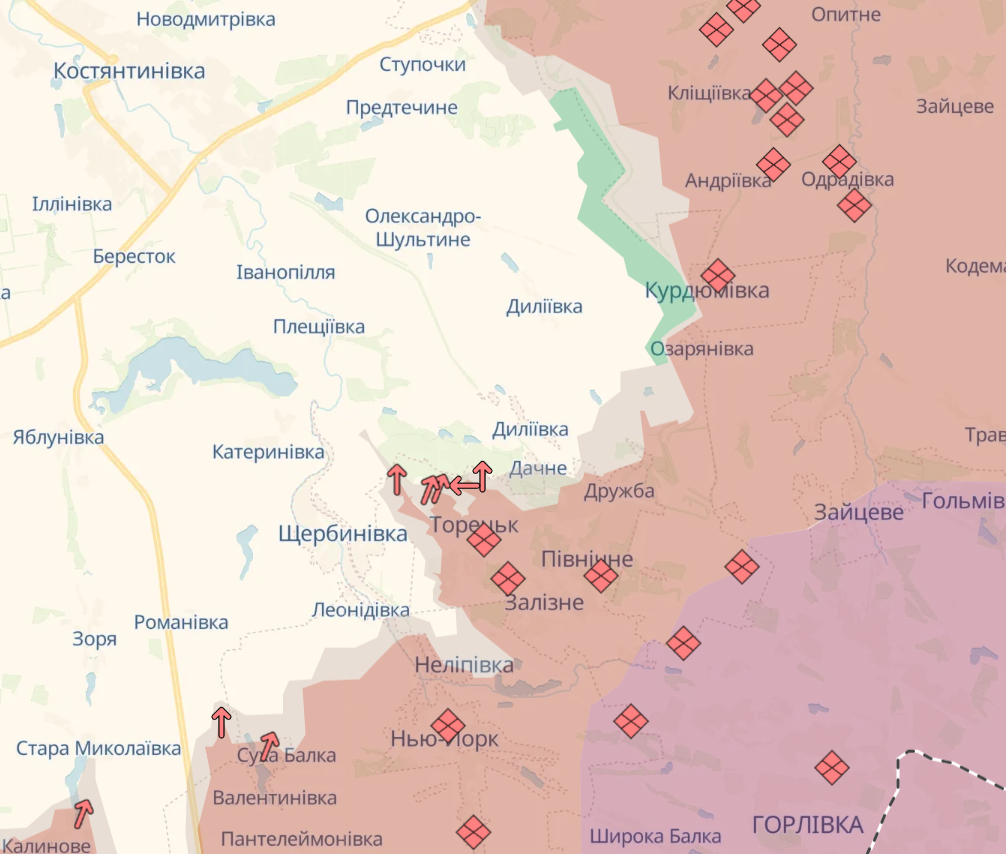 На Торецькому напрямку, де окупанти формують південний фланг майбутнього наступу, «перемир’я» також не минуло даремно. Росіяни почали активно знімати мінні загородження, підтягнули бронетехніку й артилерію ледь не на нуль, зокрема до району Дачного, а в житловій забудові Горлівки зосередили бронетехніку й САУ, зокрема кілька 2С19 «Мста-С». Ворог захопив Пантелеймонівку, Валентинівку, Суху Балку, пів Тарасівки, вийшов на західні околиці Торецька, почав штурми Романівки й Леонідівки. Ось така ціна заборони для Сил оборони використовувати артилерію, міномети, РСЗВ і FPV-дрони.